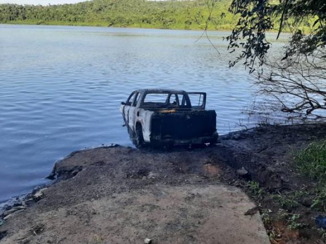 Informações da Brigada Militar de Tucunduva, 4ª Cia com sede em Horizontina, dão conta da localização de uma caminhonete incendiada no leito do Rio Uruguai, localidade de Lajeado Saltinho, interior de Novo Machado, fronteira com a Argentina.